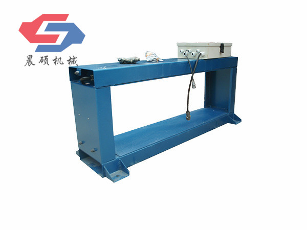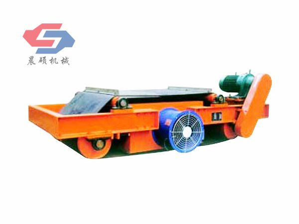 電磁除鐵器的基礎(chǔ)上增加了驅(qū)動(dòng)電機(jī)、滾筒、帶刮板的缷鐵膠帶等組成的缷鐵機(jī)構(gòu)。在工作過程